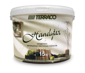 на поверхности. Хэндитекс формирует красивую белую объемную поверхность, декоративный эффект которой может быть усилен нанесением одного из эффект образующих финишных покрытий Teррако, таких как Хэндистайл, Фреско, Хэнди Плюс. Хэндитекс скрывает волосяные трещины и другие мелкие дефекты, что делает его особенно привлекательным для