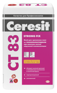 Клеевая смесь CT 83 предназначена для крепления теплоизоляционных плит из пенополистирола, а также противопожарных рассечек из минераловатных плит, на минеральных основаниях при устройстве систем наружной теплоизоляции фасадов Ceresit VWS.
